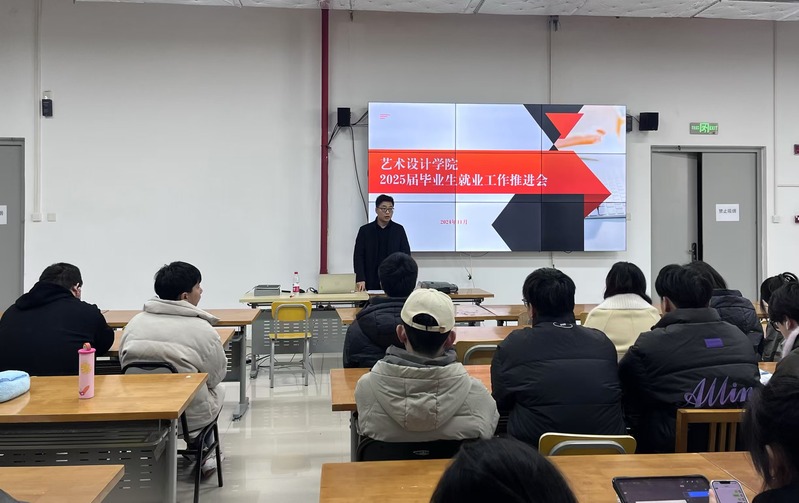 于 11月25日下午在艺术大楼201召开2025届毕业生就业工作推进会。会议由研究生辅导员黄鑫慧主持,学院党委副书记贾红雨及全体2025届毕业研究生生参加。