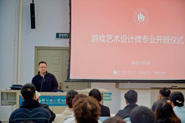 2025年10月9日下午16点,郑州轻工业大学四虎tv 在东风校区教三楼201室举办首届游戏艺术设计微专业开班仪式。学院领导魏华院长、微专业教学团队、企业导师与首届微专业全体学员齐聚一堂。开班仪式由数字媒体艺术专业系主任、微专业负责人张博文主持。