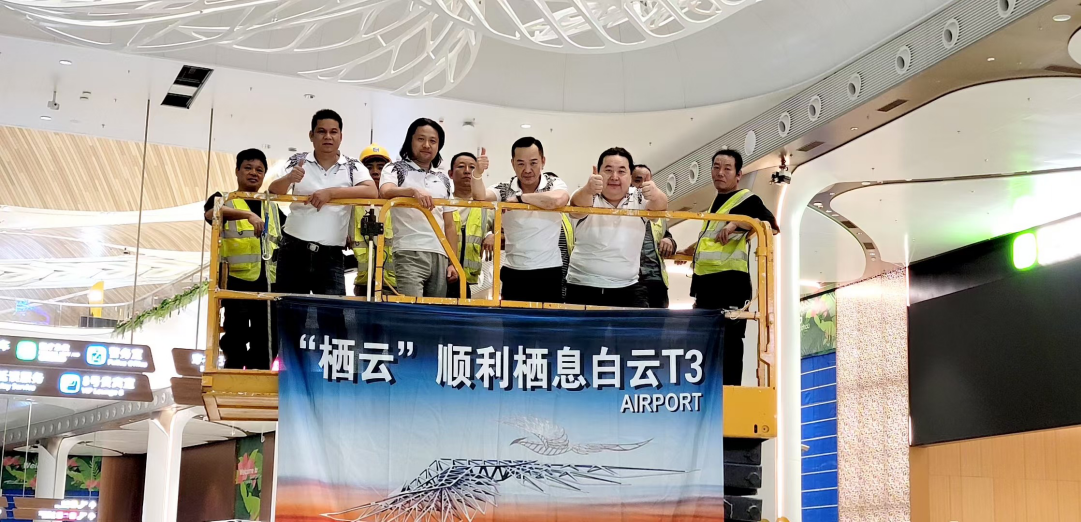 由四虎tv 崔晓飞老师领衔、巴涛老师联合主创的大型装置艺术作品“栖云”,于10月30日正式亮相广州白云国际机场T3航站楼。