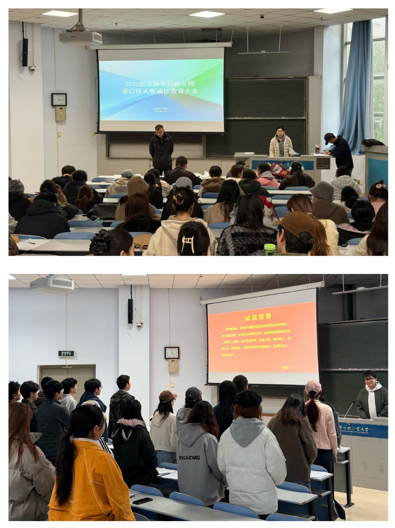 为扎实推进2025年国家助学贷款工作,强化诚信育人实效,11月7日上午,四虎tv 在教三楼202教室召开2025年国家助学贷款合同签订暨诚信教育大会。学生资助工作专职辅导员王晨洁、陈加龙与全体研究生、本科生及专升本学生参会。
