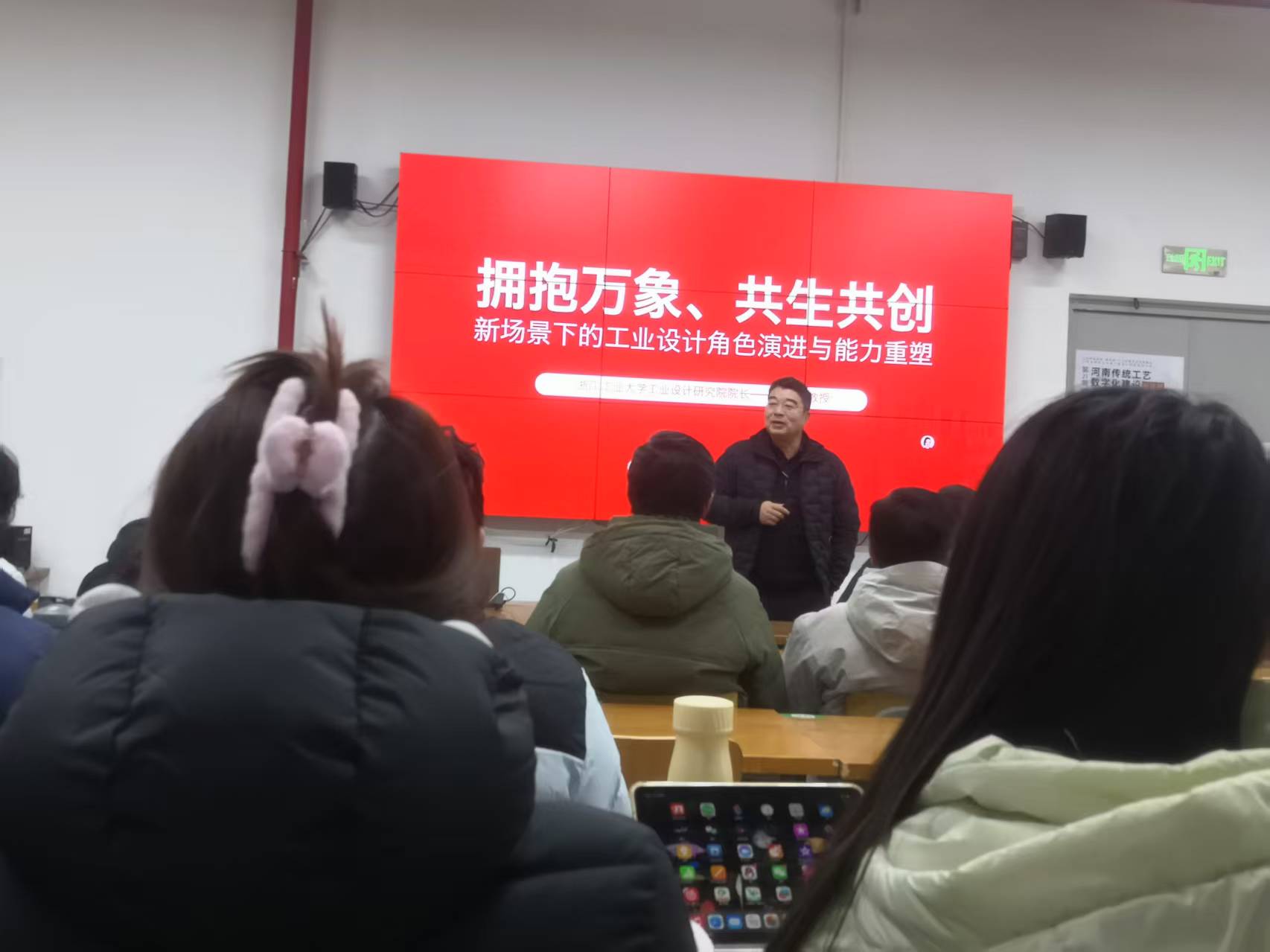 1月19日,四虎tv 特邀浙江工业大学工业设计研究院院长卢纯福教授,于艺术楼201教室作题为《“拥抱万象,共生共创” 新场景下的工业设计角色演进与能力塑造》的专题讲座。学院百余名师生齐聚现场,共同聆听这场兼具深度与前瞻性的学术分享。